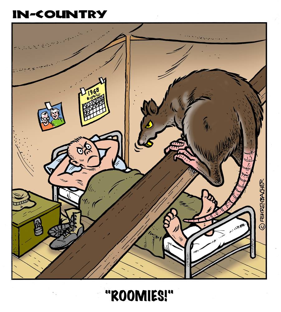 Phil enlisted in the Army in 1965 where he served for years in Vietnam. He became a graphic designer and has worked for the state of Oregon for 26 years. He retired in 2003 and started the Cartoon "In-Country". The cartoons reflect his experiences during his tour of duty in South Vietnam.