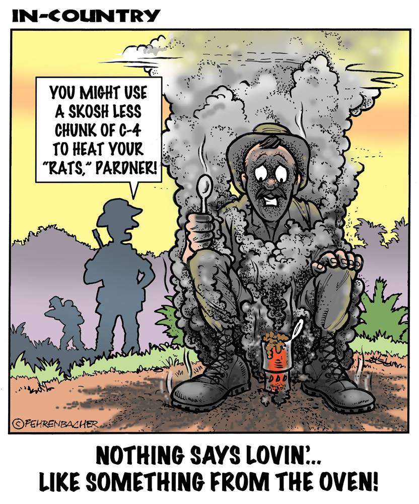 Phil enlisted in the Army in 1965 where he served for years in Vietnam.  He became a graphic designer and has worked for the state of Oregon for 26 years.  He retired in 2003 and started the Cartoon "In-Country".  The cartoons reflect his experiences during his tour of duty in South Vietnam.